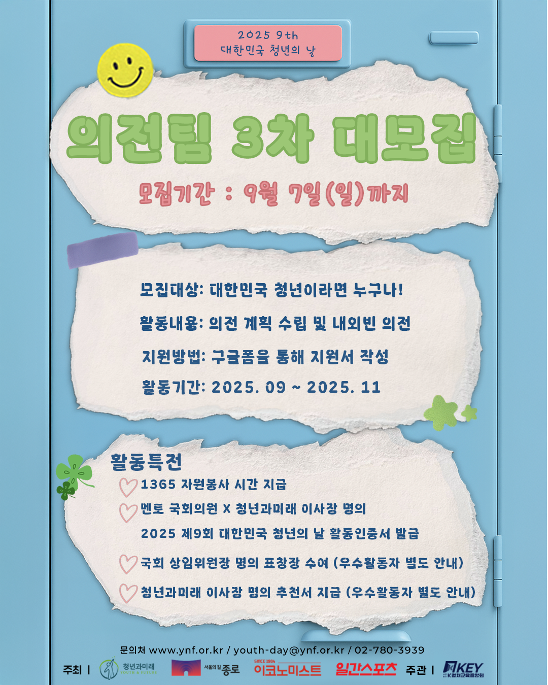 [2025 제9회 대한민국 청년의 날] 기획홍보단 의전팀 3차 대모집!