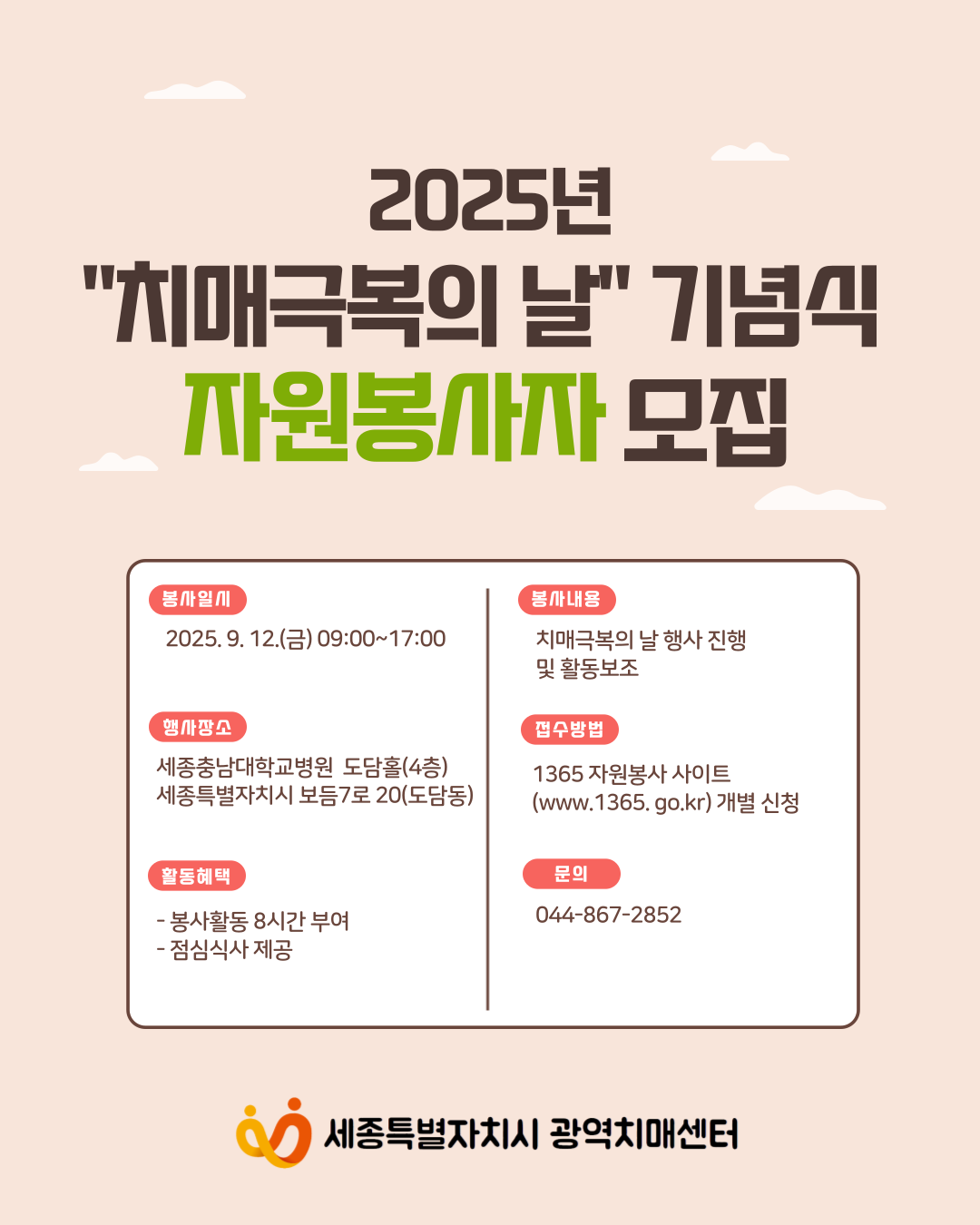 세계 치매 극복의 날을 기념하는 행사로, 진행을 위해 봉사자를 모집하오니 많은 참여 부탁드립니다.