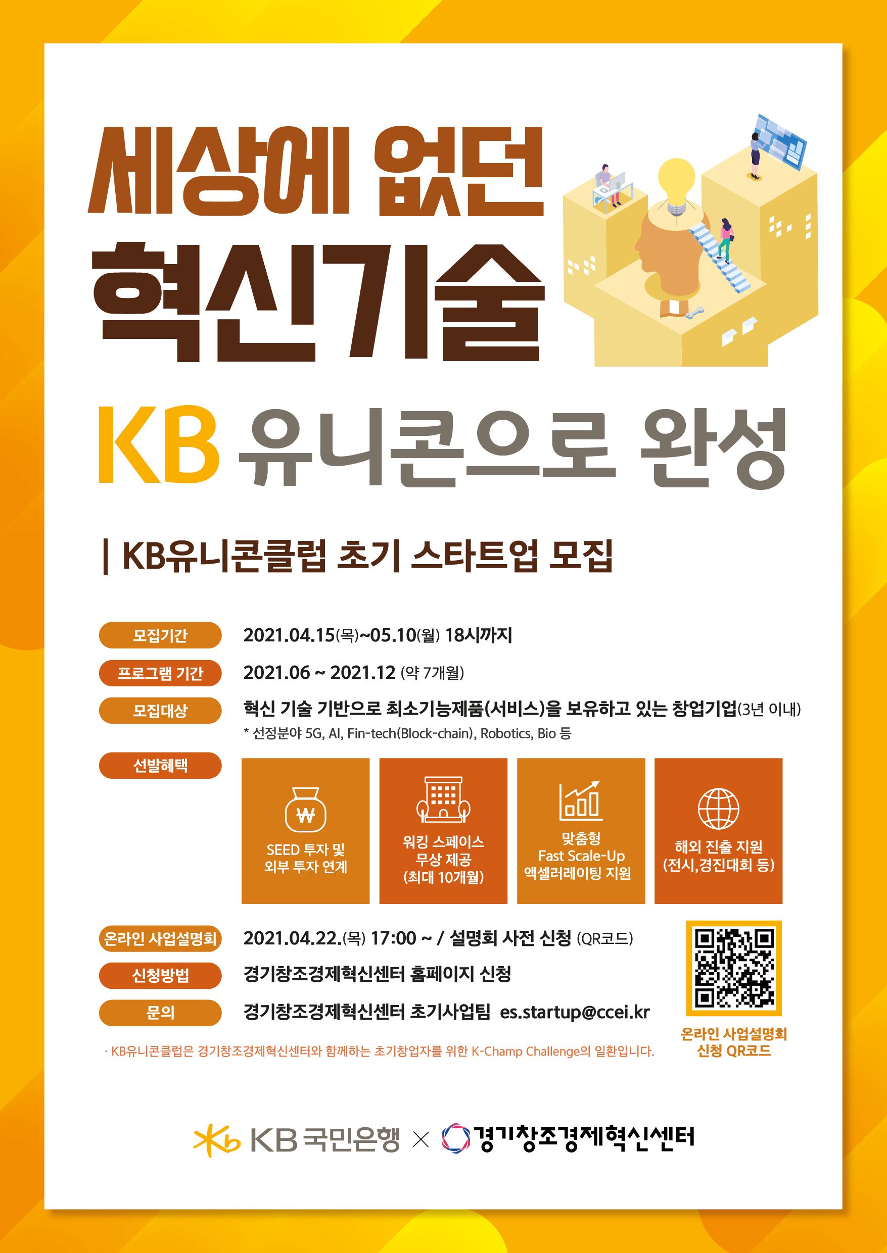 *KB유니콘클럽은 경기창조경제혁신센터와 함께하는 초기창업자를 위한 K-Champ Challenge의 일환입니다.