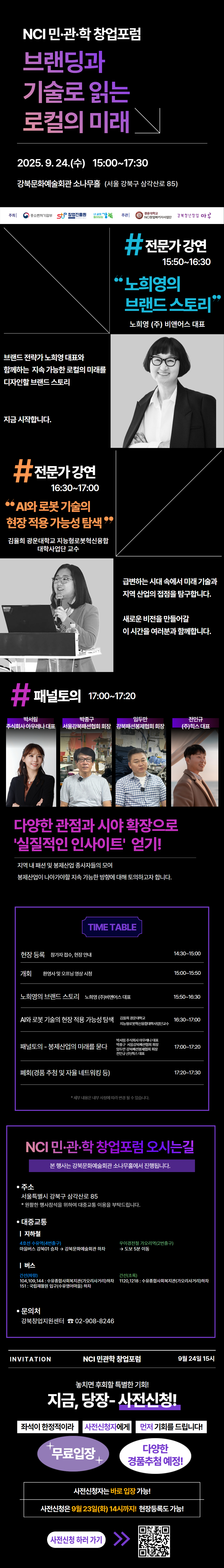 NCI 민관학 창업포럼이 “브랜딩과 기술로 읽는 로컬의 미래”라는 주제로 개최됩니다.