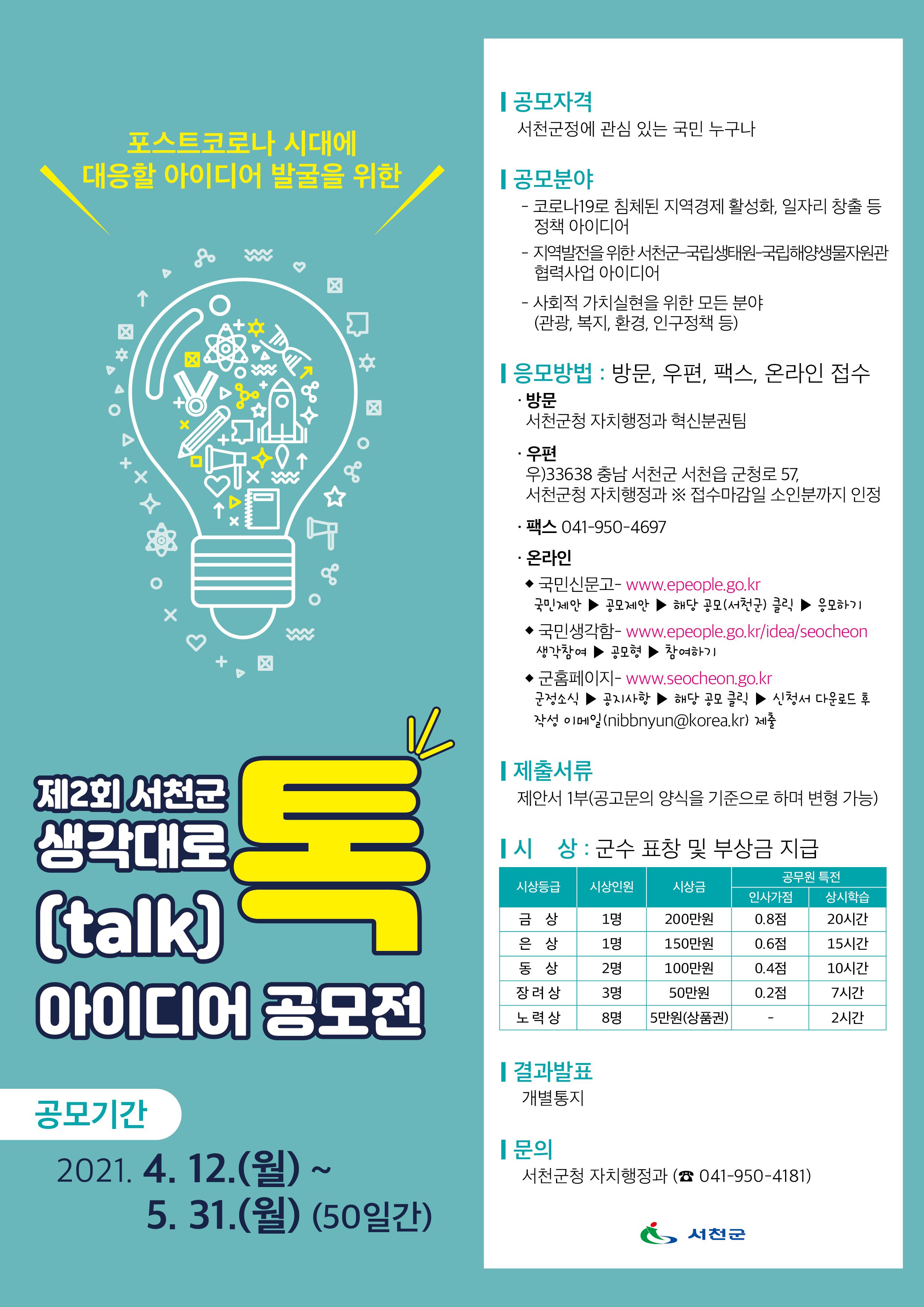 제2회 서천군‘생각대로 톡(talk)’아이디어 공모전