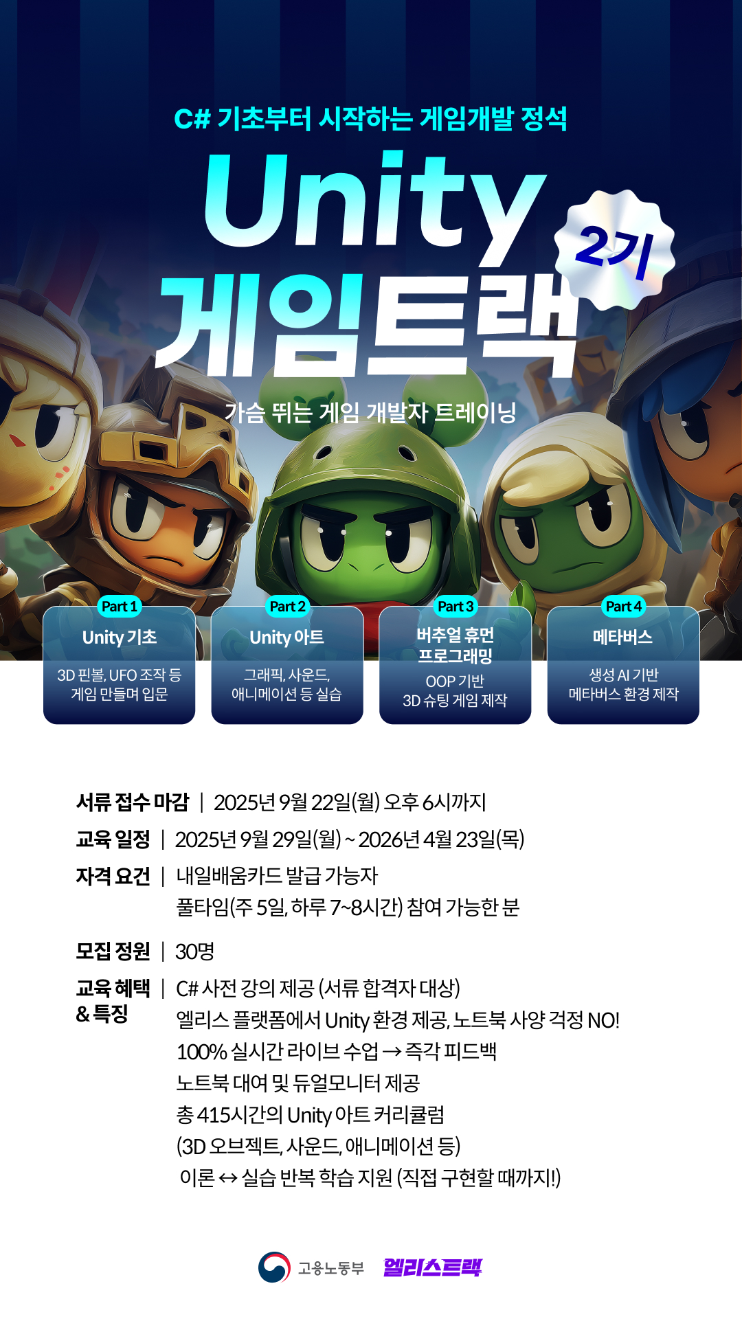 👉 국비지원 100%로 참여 가능한 이번 Unity 트랙 2기, 선착순 30명만 모집합니다.