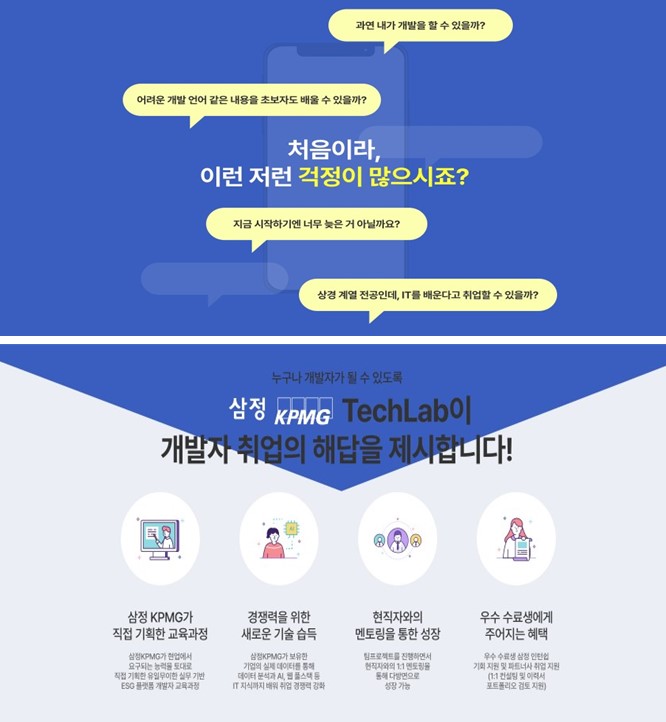 - 최적의 학습 환경 제공(실시간질의응답체계구축,실급실및회의실상시개방,우수프로젝트포상,온라인수강지원)