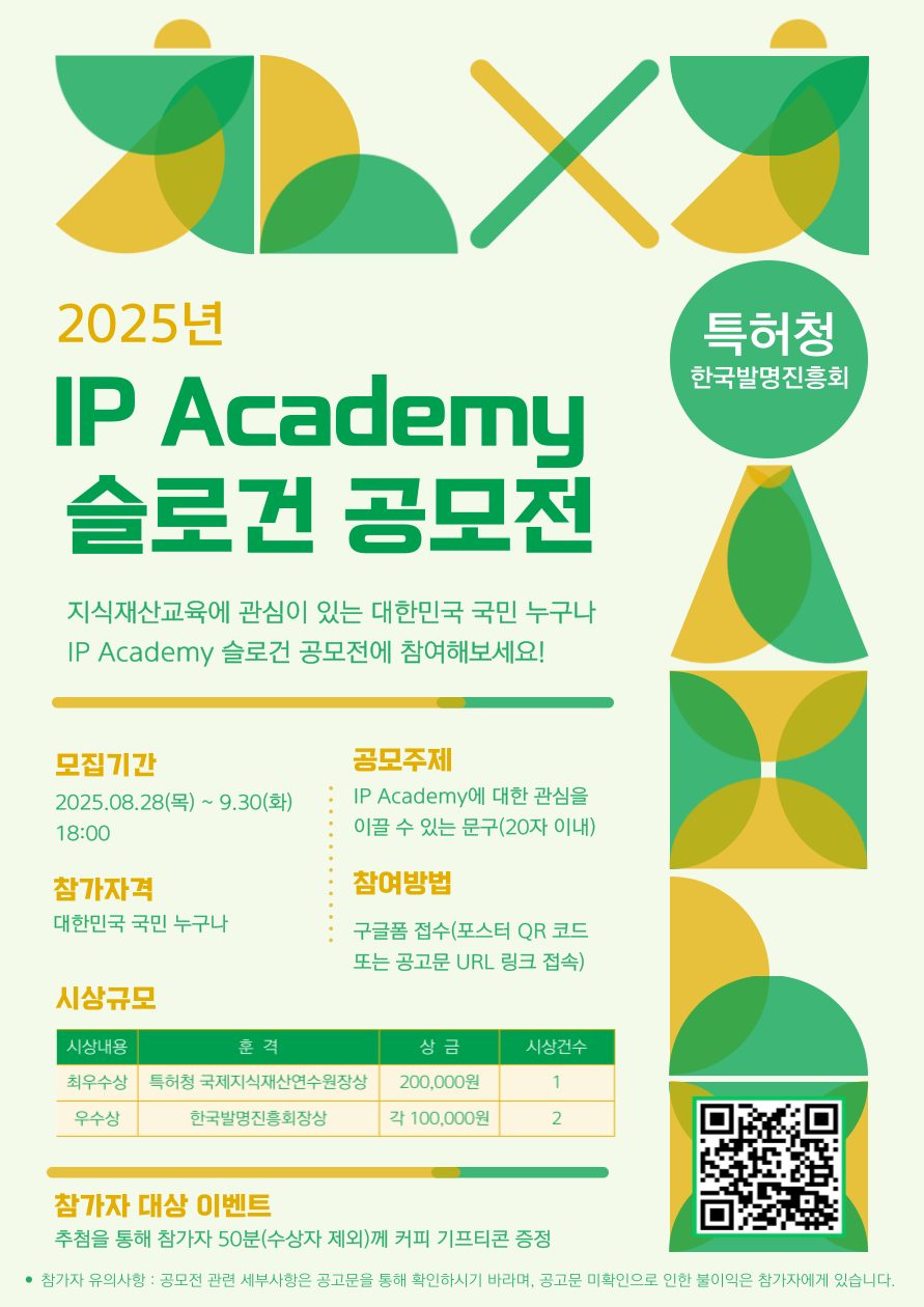 2025년 IP Academy 슬로건 공모전을 공모하오니, 관심있는 분들의 많은 참여 부탁드립니다.