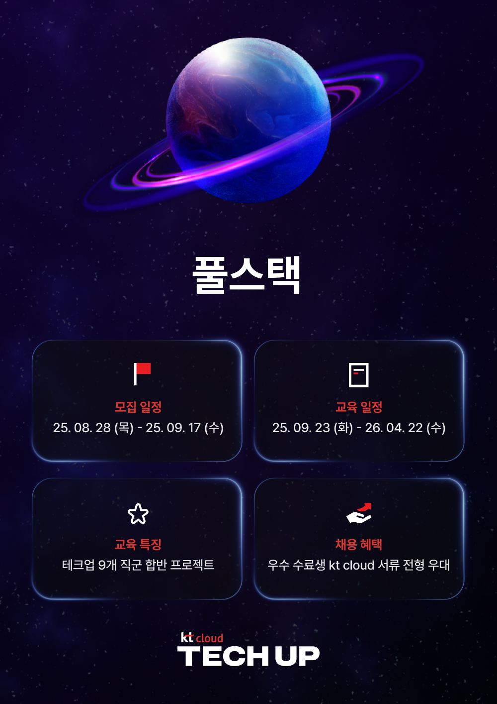 1. 우수 수료생 kt cloud 서류 전형 우대 : 우수 수료생에 한하여 kt cloud 채용 지원시 서류 전형 우대