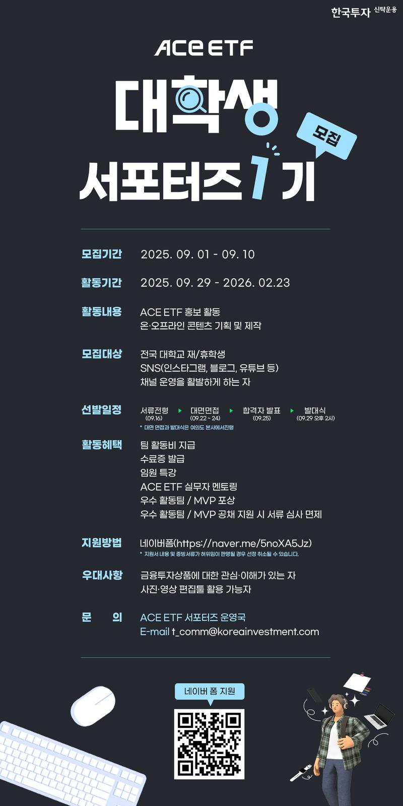 ETF를 쉽고 재미있게 알리며 함께 성장할 ACE ETF 대학생 서포터즈를 모집합니다!