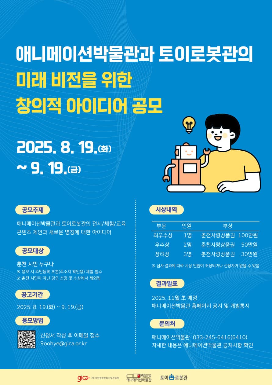 ● 공모내용: 애니메이션박물관과 토이로봇관 전시/체험/교육 콘텐츠 및 새로운 명칭 제안
