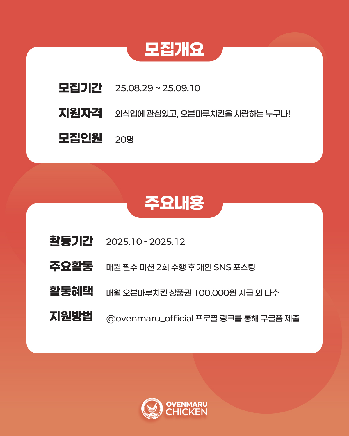 • 매월 오븐마루치킨 상품권 100,000원 제공