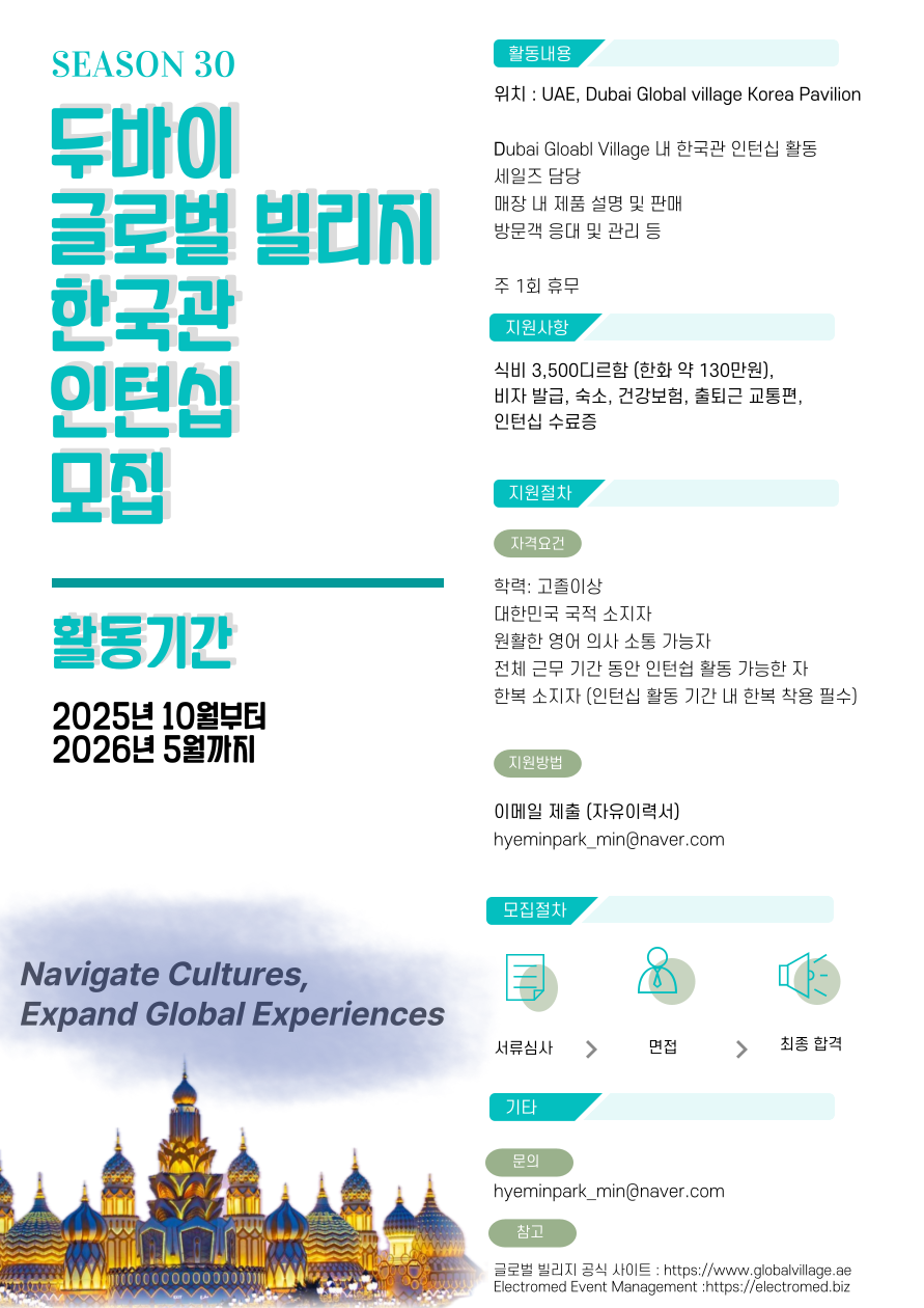 Dubai Gloabl Village 내 한국관 인턴십 활동