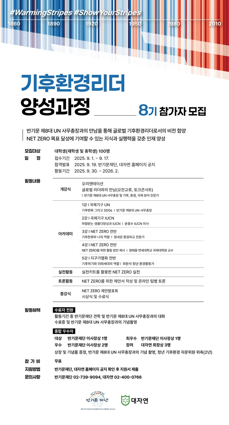 [반기문재단x대자연] 제8기 기후환경리더 양성과정 참가자 모집