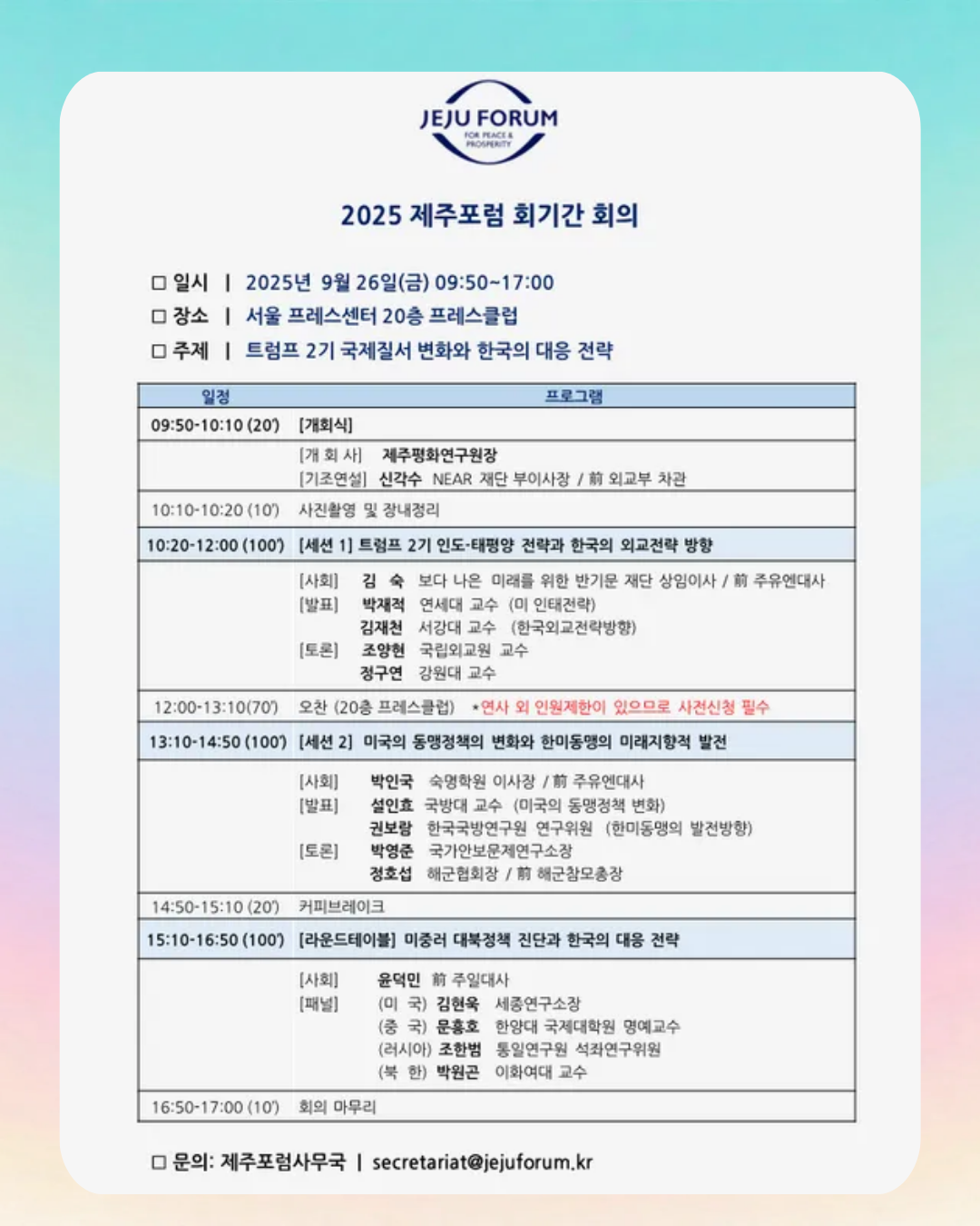 📢 2025 제주포럼 회기간회의 참관 안내📢