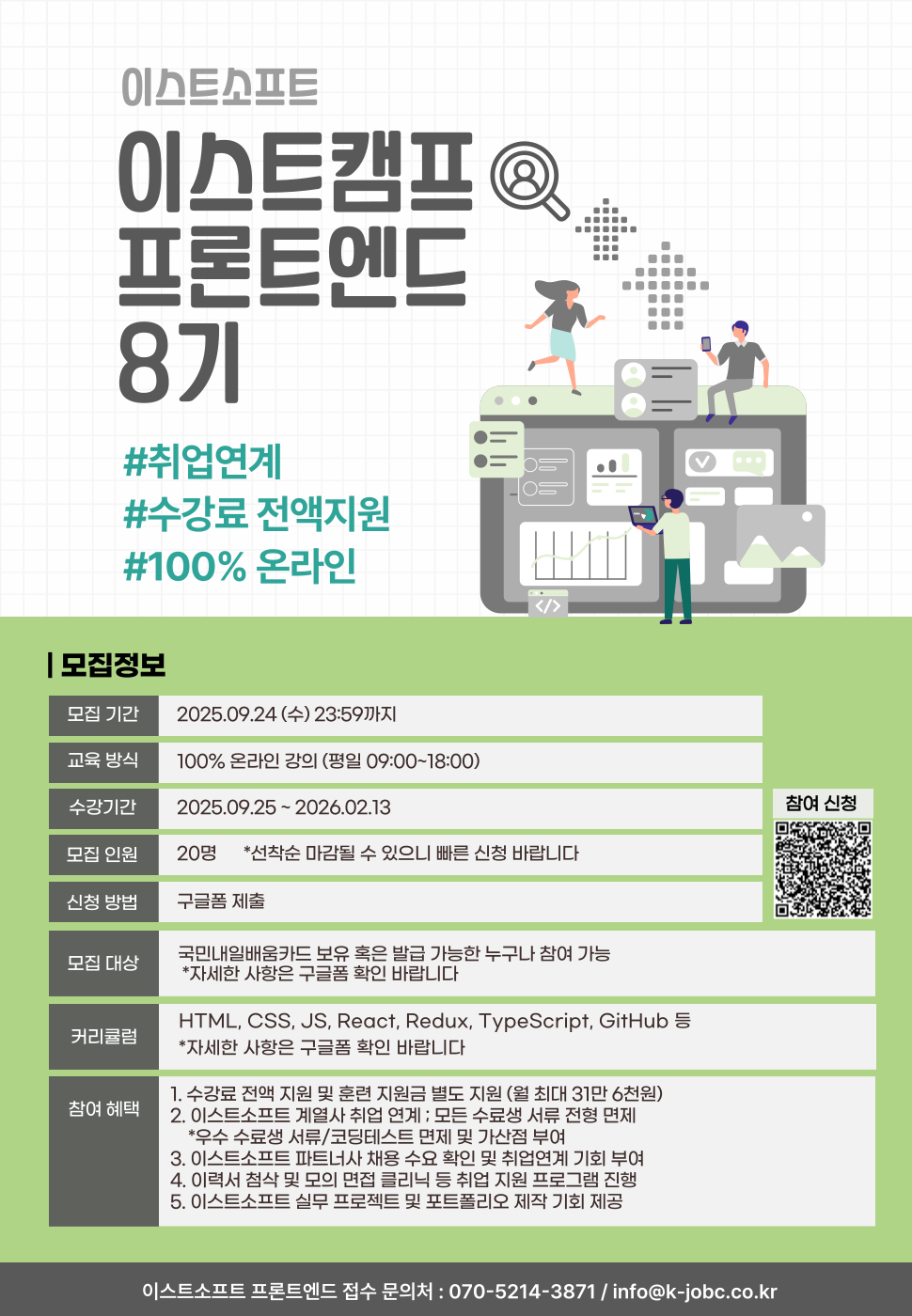 이스트소프트는 '이스트캠프 프론트엔드 개발 8기 과정'을 오픈했습니다!