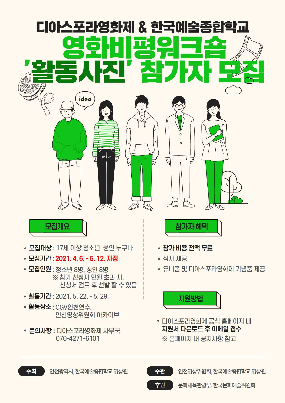 - 접수문의 : 디아스포라영화제 사무국(070-4271-6101)