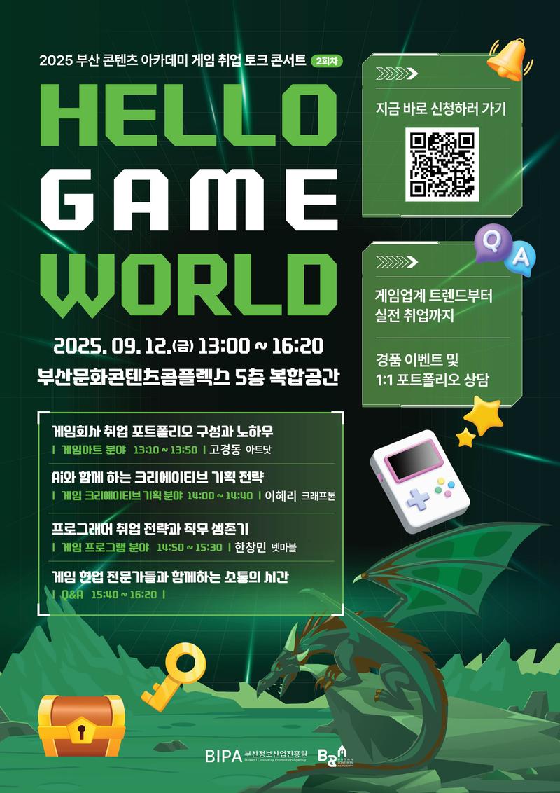 - 주최/주관: 부산정보산업진흥원(BIPA), 부산콘텐츠아카데미