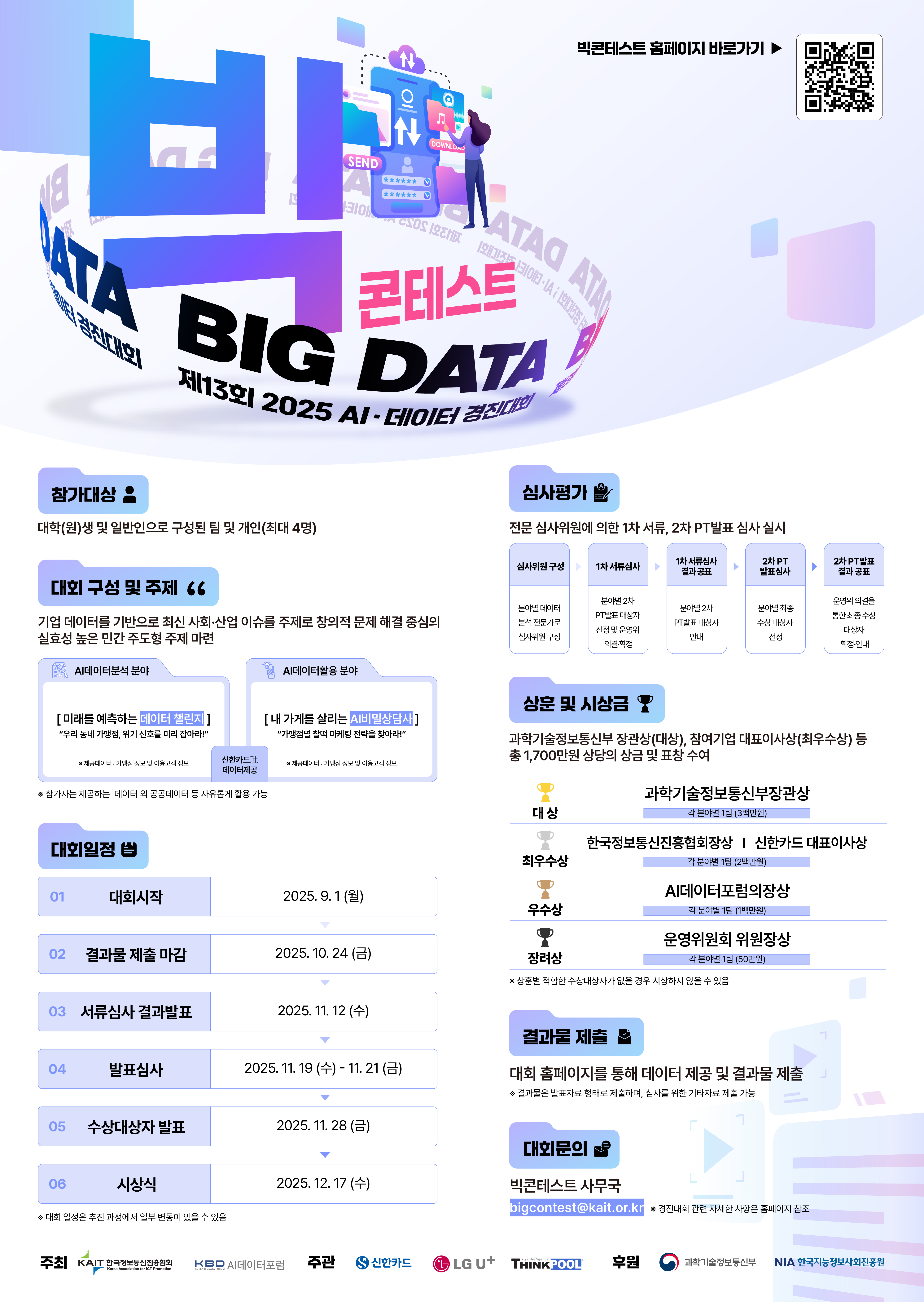 한국정보통신진흥협회에서 주최하는 2025 빅콘테스트 경진대회에 대해 안내드립니다.