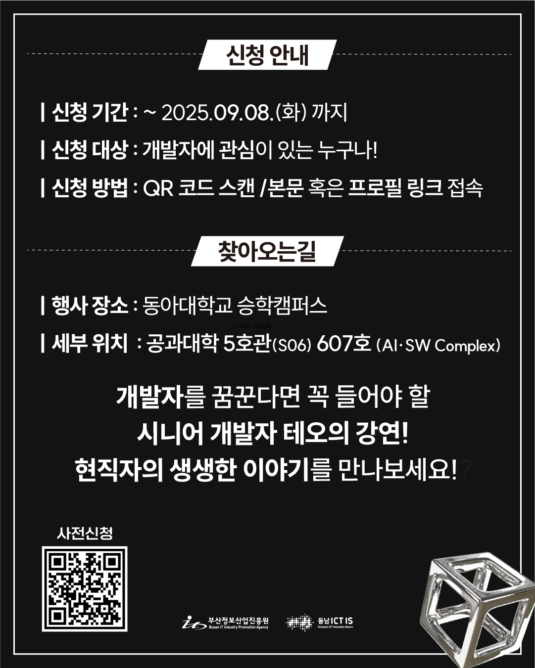장소: 동아대학교 승학캠퍼스 공과대학 5호관 607호 (AI-SW Complex)