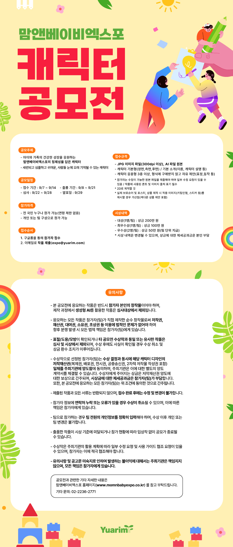 - 출품 방법 : 맘앤베이비엑스포 이메일(expo@yuarim.com)로 작품 제출