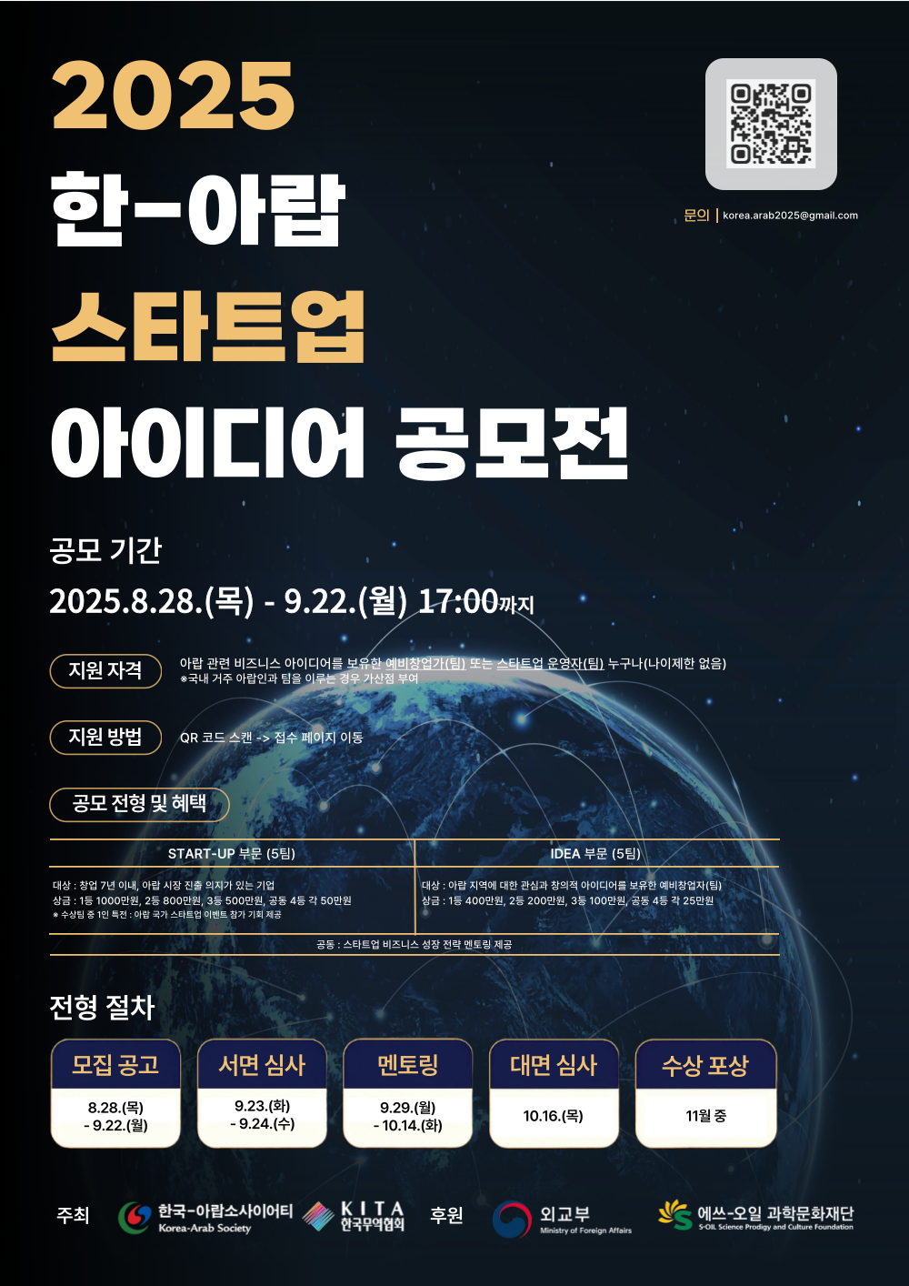 * 수상팀 중 1명에게 아랍국가에서 개최 예정인 스타트업 이벤트 참가 기회 제공