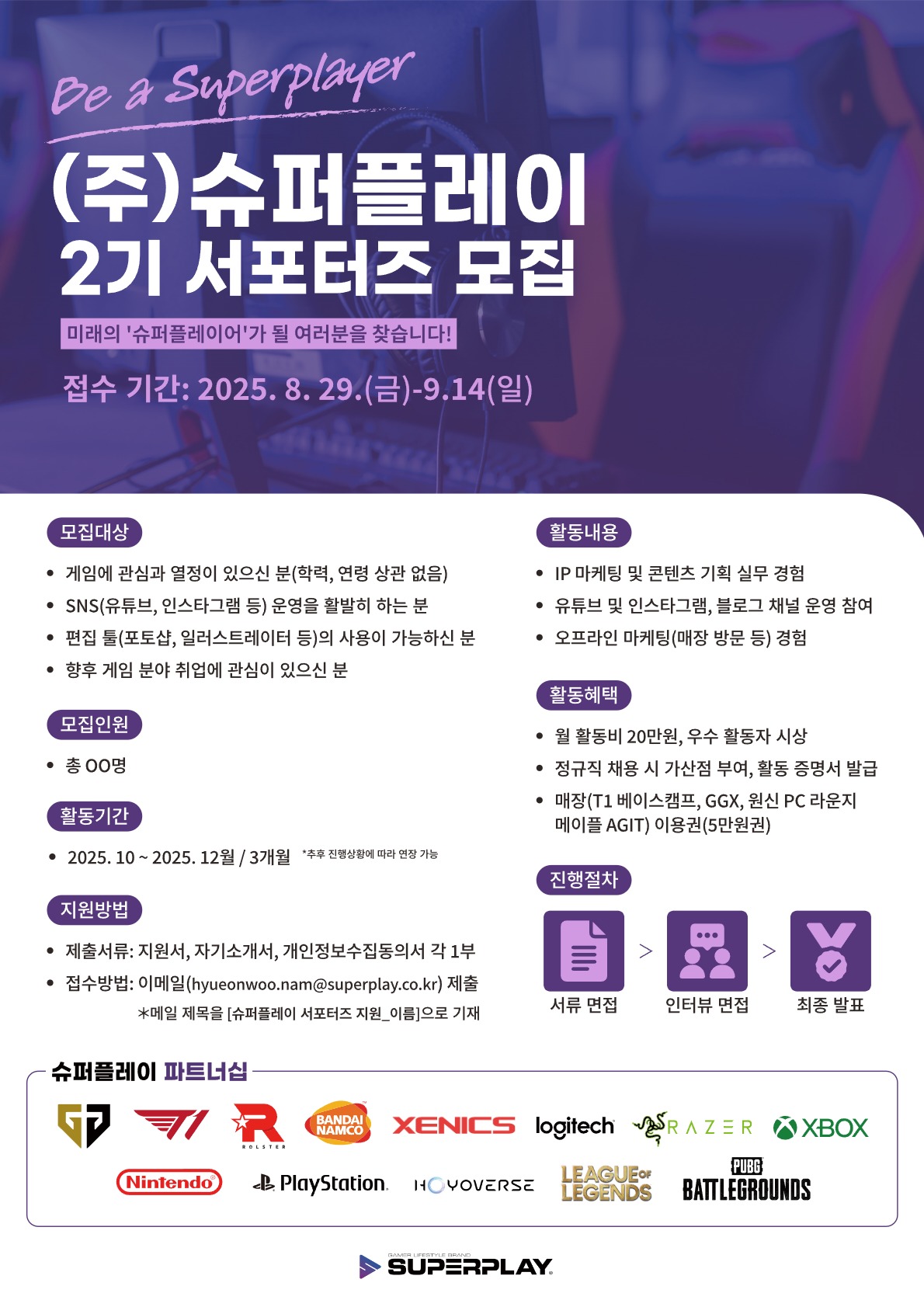 🎮 슈퍼플레이 서포터즈 2기, ‘슈퍼플레이어’를 찾습니다!