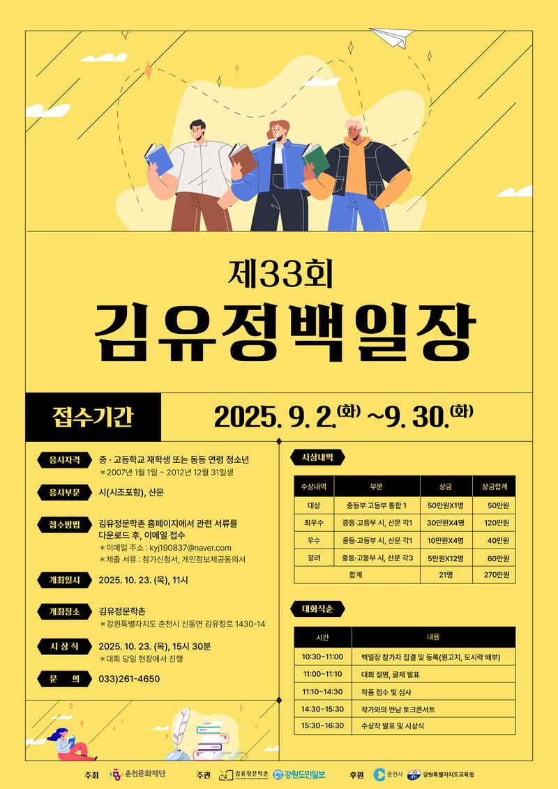 ◎접수방법 : 김유정문학촌 홈페이지에서 관련 서류 다운로드 후, 이메일 접수