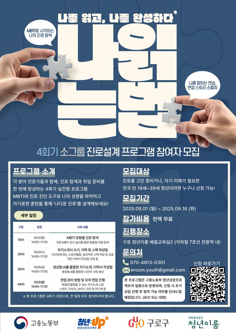 [구로 청년이룸] 4회기 취업진로설계, 나읽는법 참여자 모집(~9/16)