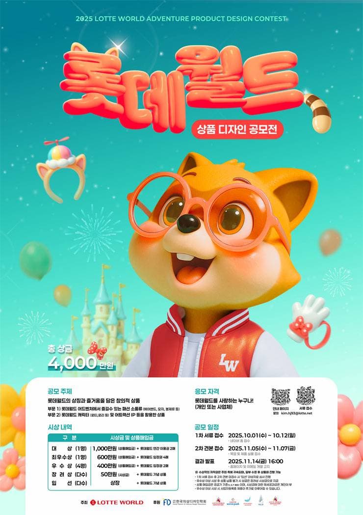 최우수상 (1명) 600만원 + 롯데월드 입장권 4매