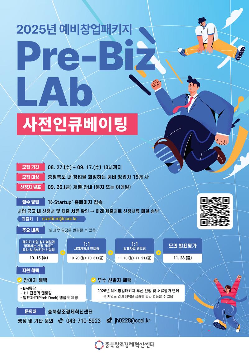 [충북창조경제혁신센터] 2025년 예비창업패키지 Pre-Biz LAb 사전인큐베이팅 참가자 모집