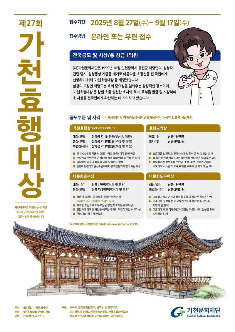 제27회 가천효행대상 공모 (총 장학금 1억원)