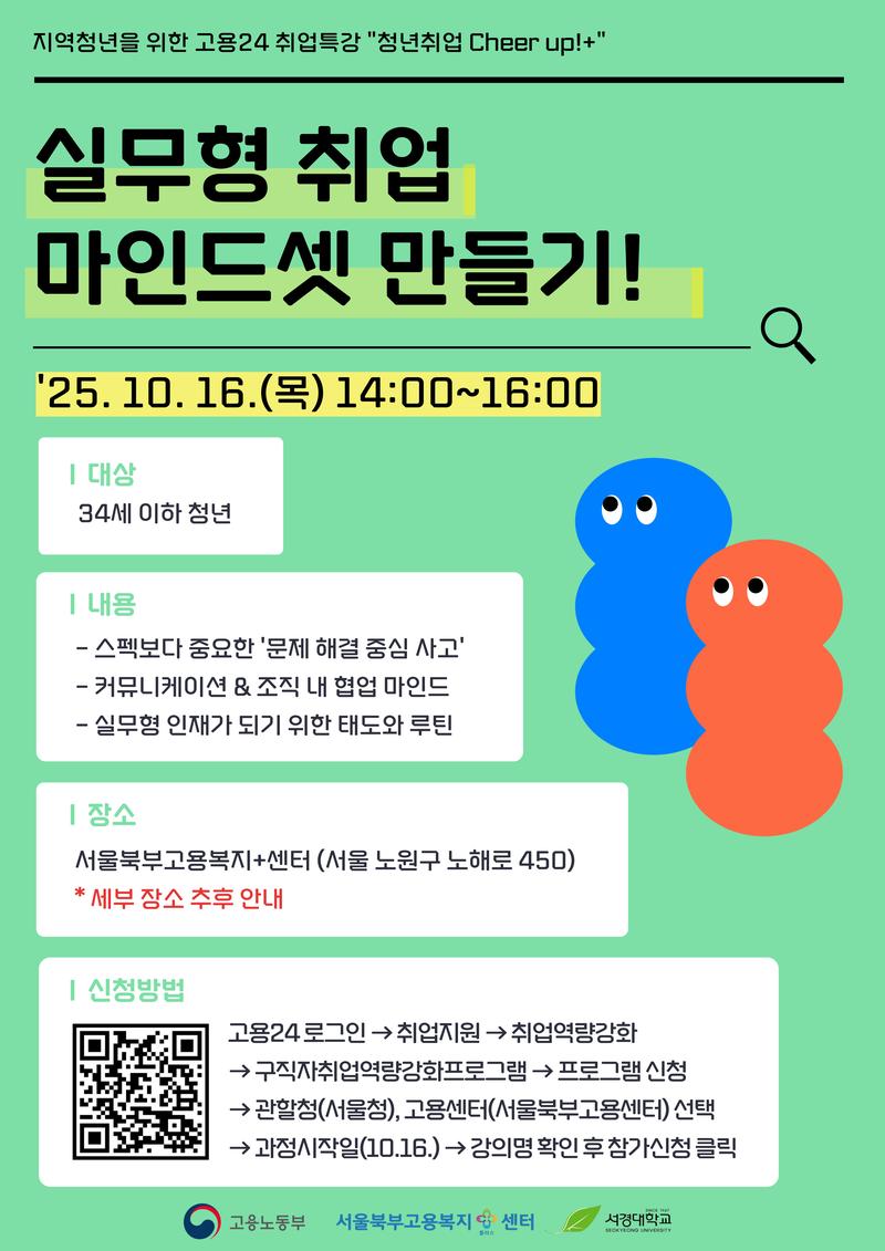 고용24 취업특강 청년취업 Cheer up!+ 10월 진행 안내 |