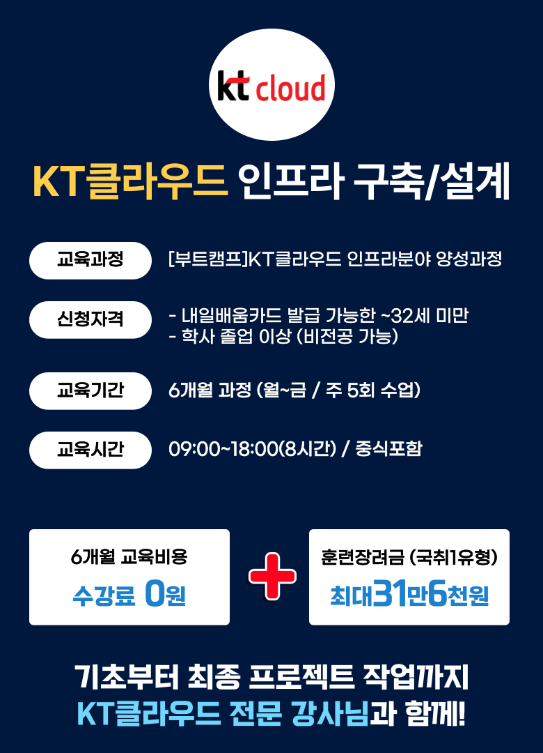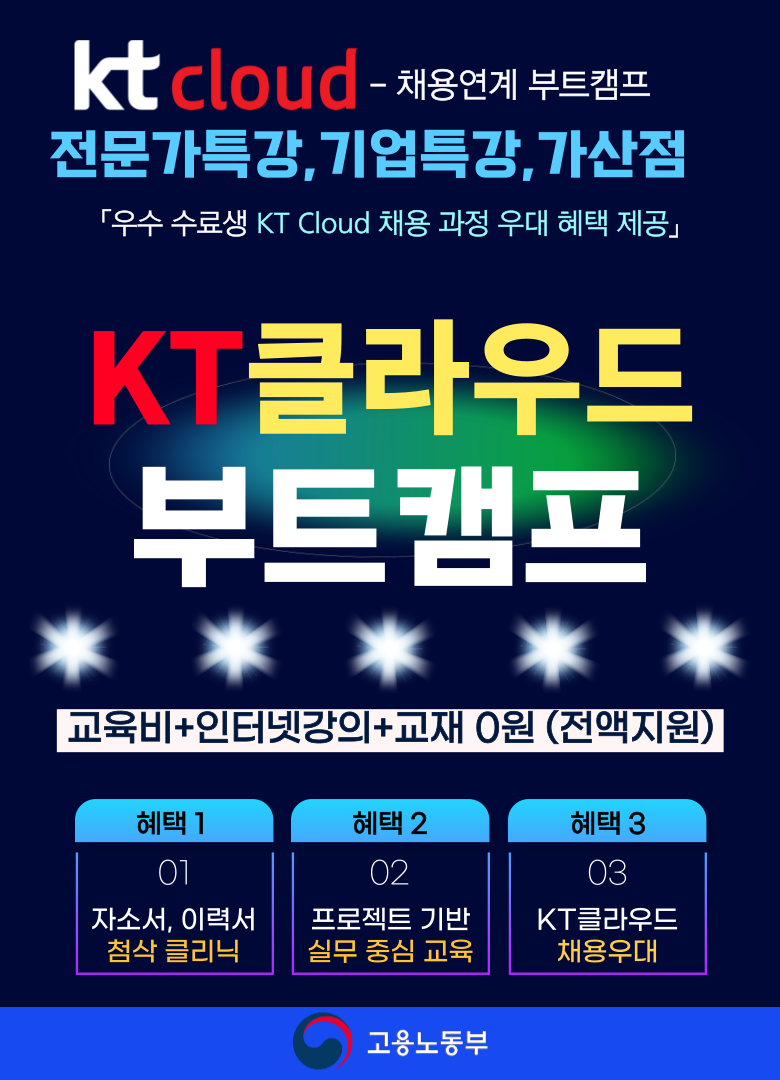 비대면 온라인 KT클라우드 부트캠프 교육 우수훈련생 가산점 제공