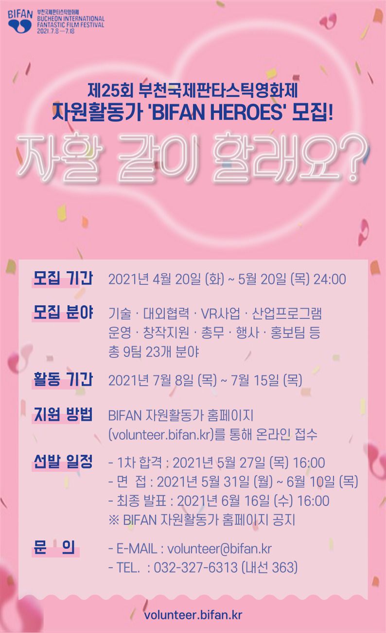 제25회 부천국제판타스틱영화제를 이끌어 갈 BIFAN HEROES를 모집합니다.