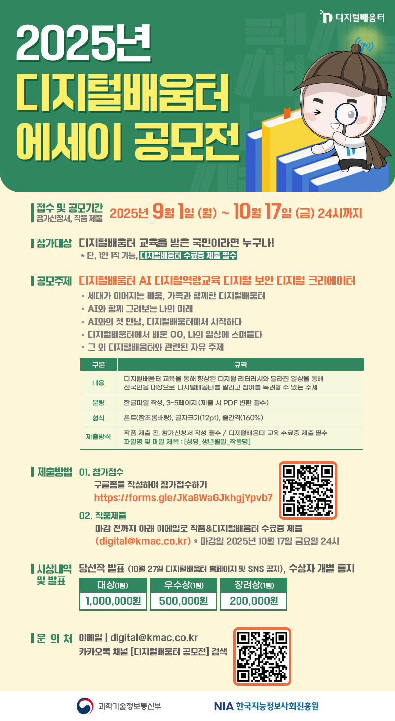 카카오톡 채널: ‘디지털배움터 AI영상&에세이 공모전’ 검색 후 채널 추가