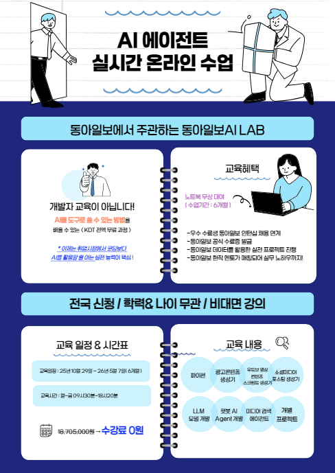 - [동아일보AI LAB] AI에이전트 챗GPT 활용 온라인 KDT 교육 참여자를 모집합니다.