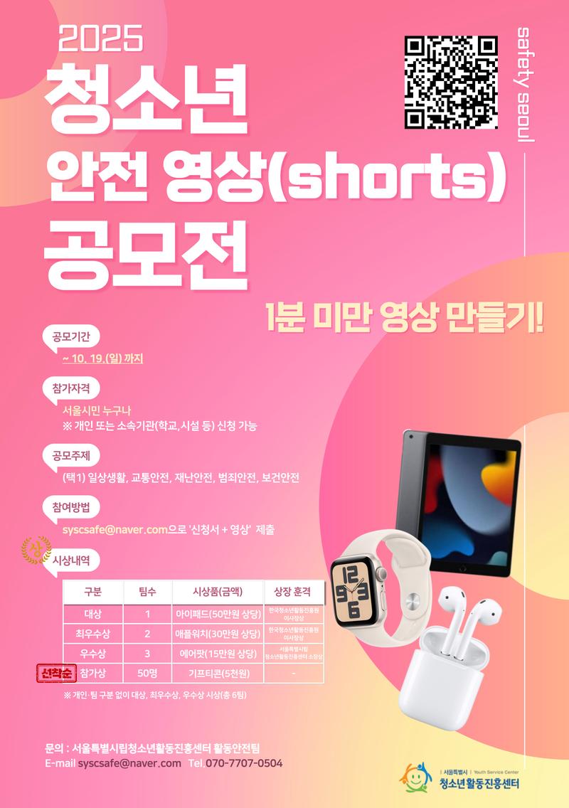 ★선착순 기프티콘 제공★ [2025년 제3회 청소년 안전 영상(shorts) 공모전 안내 및 신청모집]