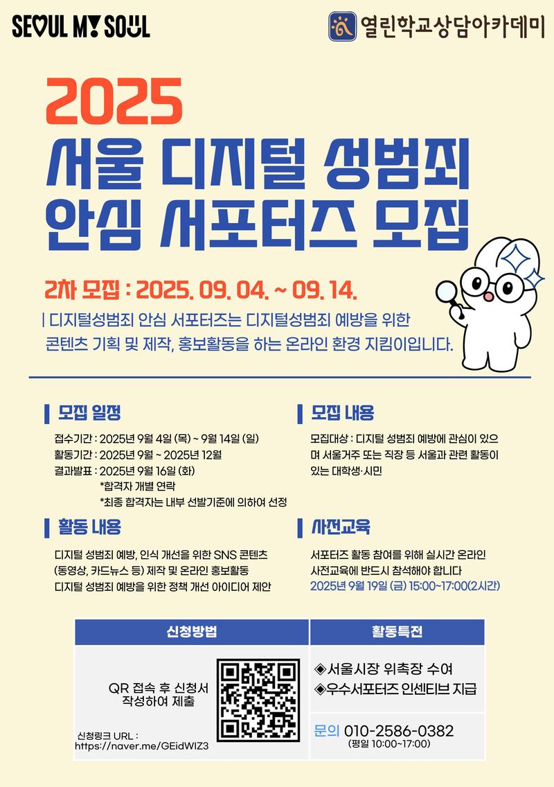 ■ 문의 : 2025 서울 디지털성범죄 안심 서포터즈 운영사무국