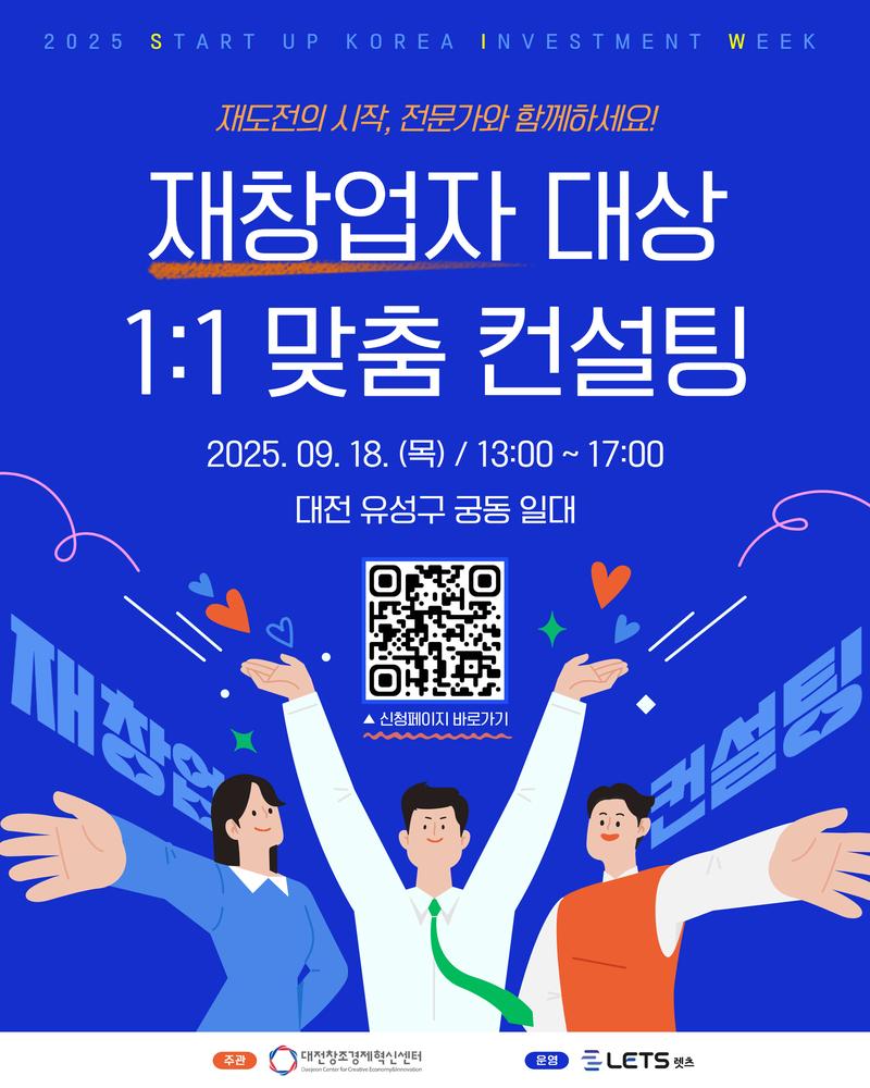 - '2025 스타트업코리아 투자위크(SIW)'의 일환으로 진행되는 재창업자 대상 1:1 맞춤 컨설팅 프로그램으로,