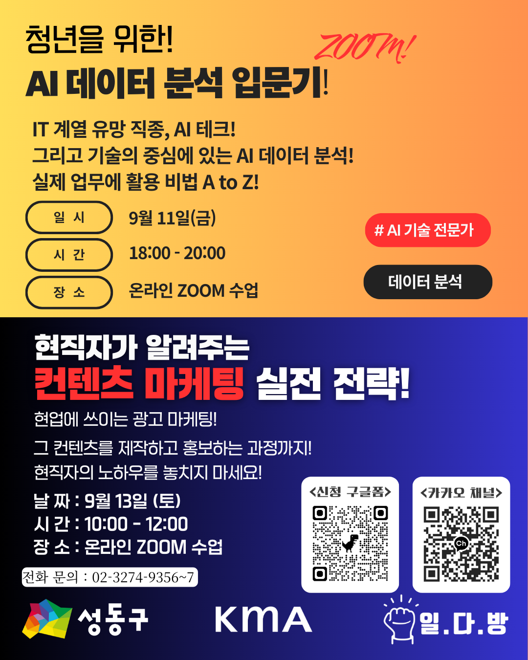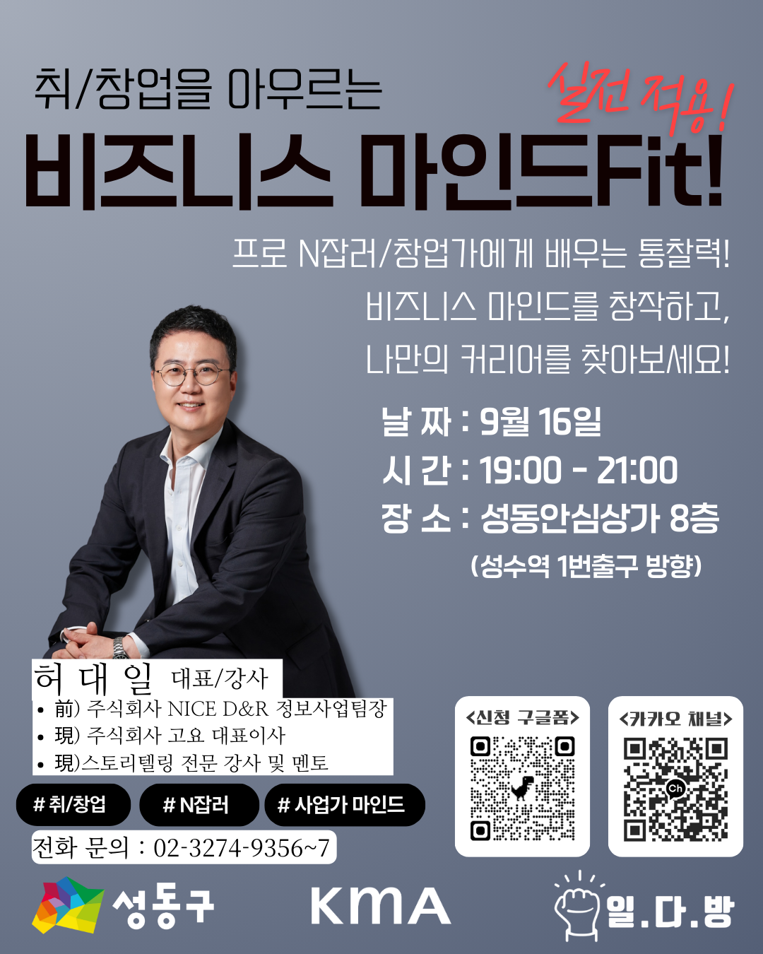 #청년일다방 #성동구청년일자리카페 #8월프로그램 #무료특강 #커리어성장