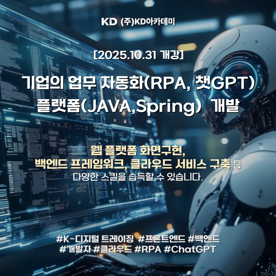 ■ 훈련과정명: 기업의 업무 자동화(RPA, 챗GPT) 플랫폼(JAVA, Spring) 개발