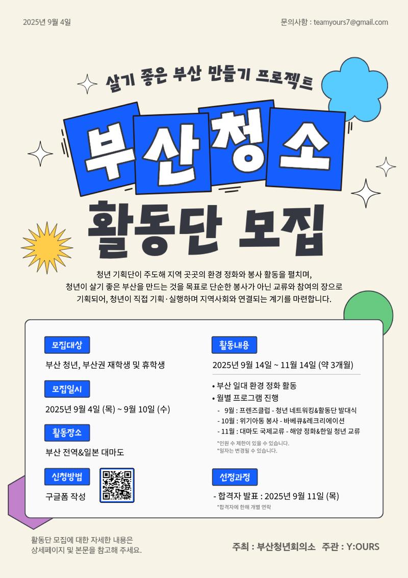 “살기 좋은 부산 만들기 프로젝트 「부산 청소!」”에서 함께할 청년을 모집합니다. ✨