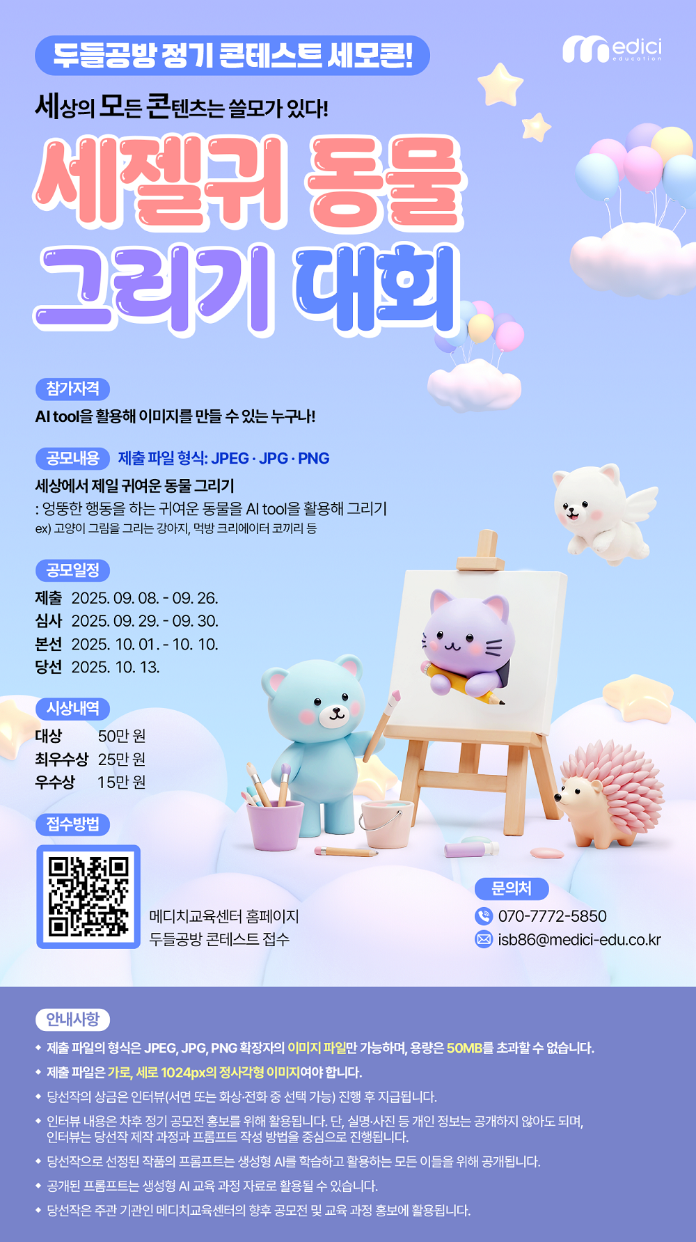 -당선작은 주관 기관인 메디치교육센터의 향후 공모전 및 교육과정 홍보에 활용됩니다.