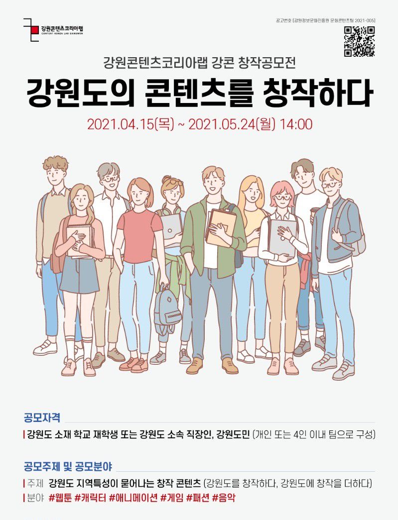 - 공모전 문의/접수 : 강콘 창작 공모전 사업운영팀 팀장 박유리