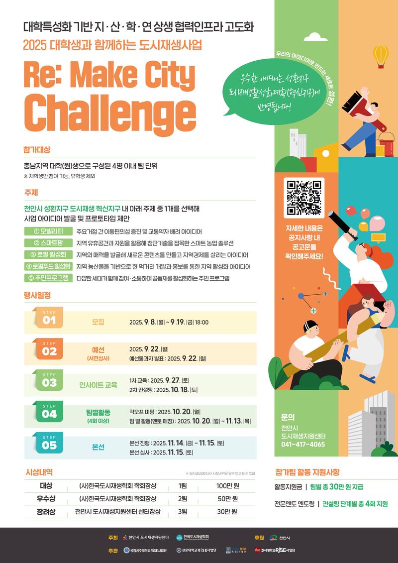 문의 : 천안시 도시재생지원센터 홈페이지 상단 "2025 Re: Make City Challenge" 게시판 이용