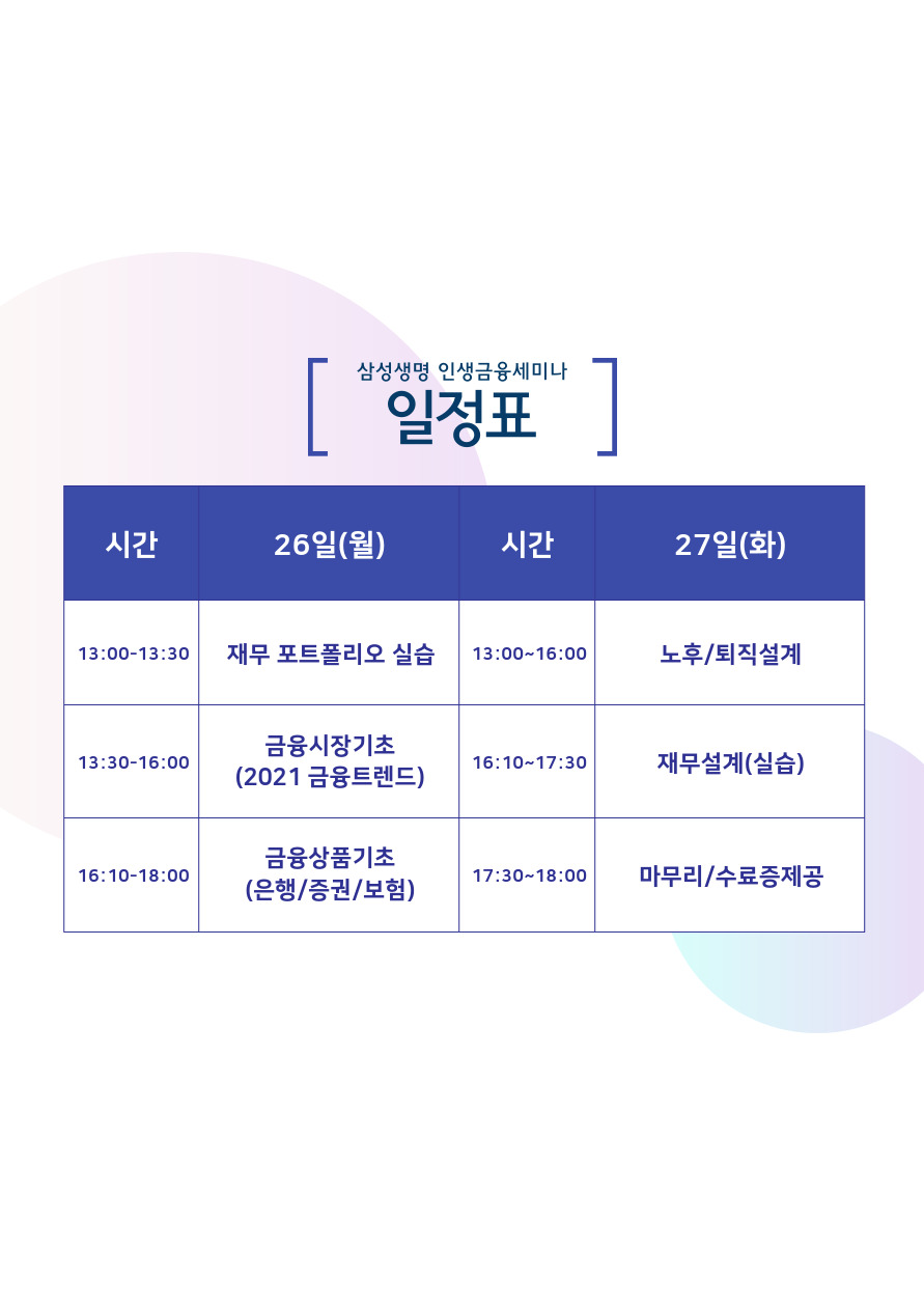 - 수료증 제공, 향후 진행 세미나 우대, 금융포트폴리오 자료제공