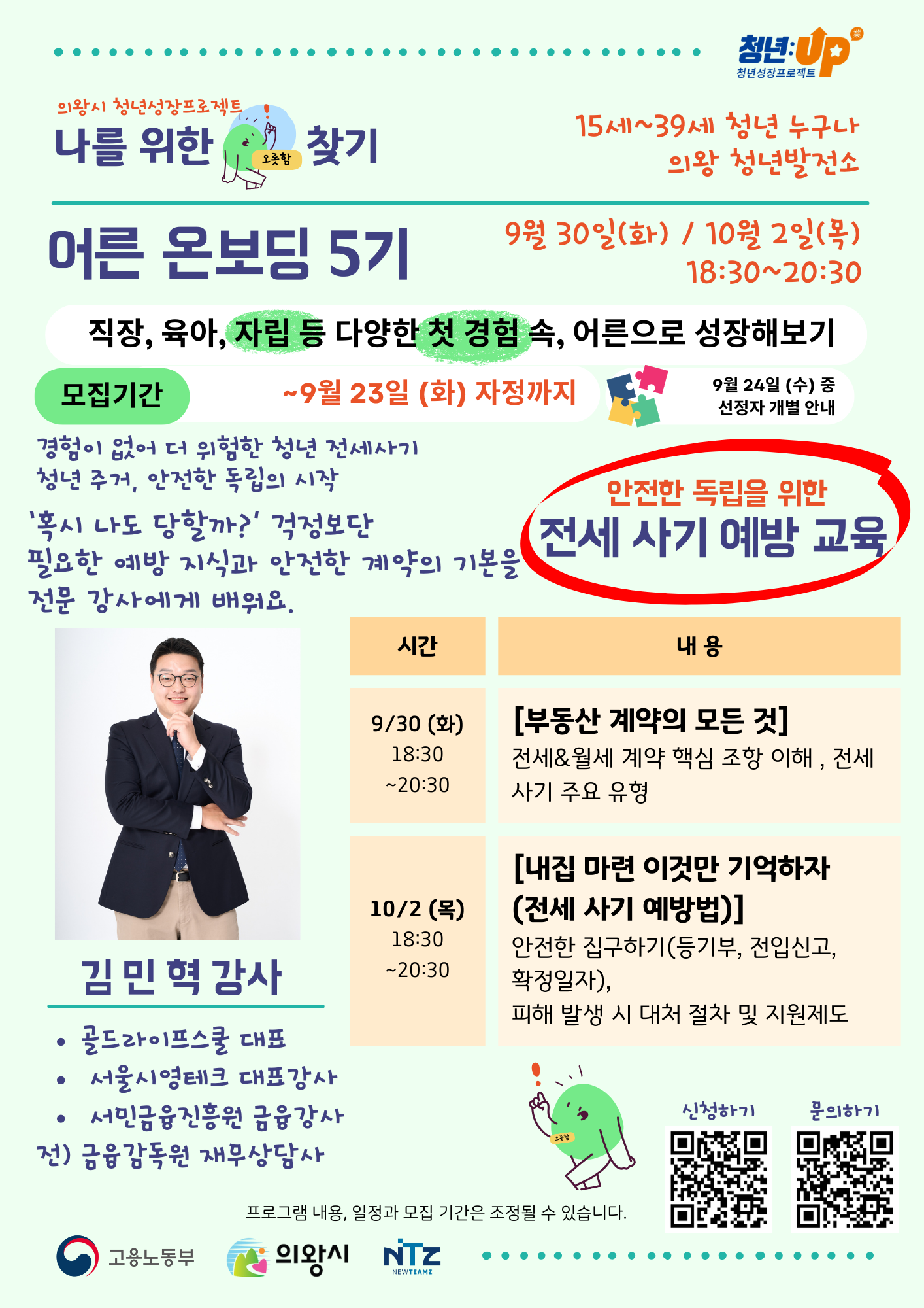 부동산 계약 전문 강사님께 안전한 계약의 기본부터 전세 사기 예방법을 배워볼 수 있는 기회!