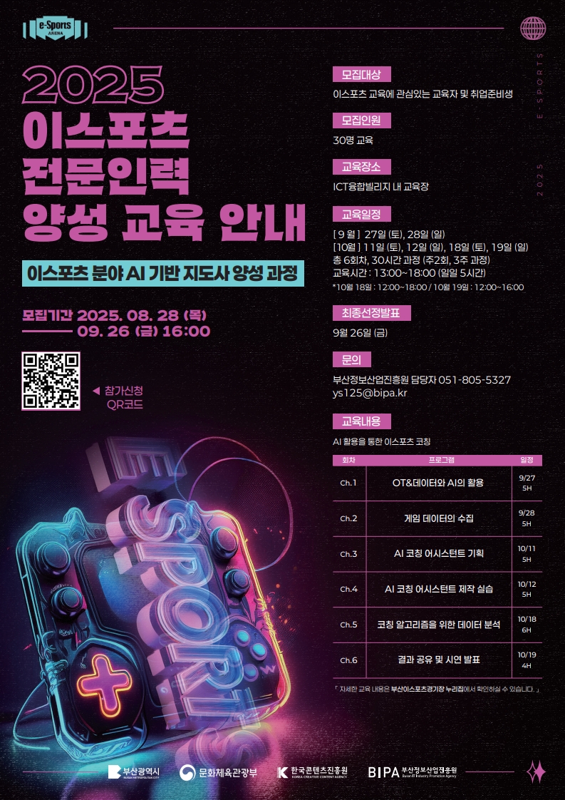 올해도 부산이스포츠경기장(BRENA)에서 진행되는 이스포츠 전문인력 양성 교육✨