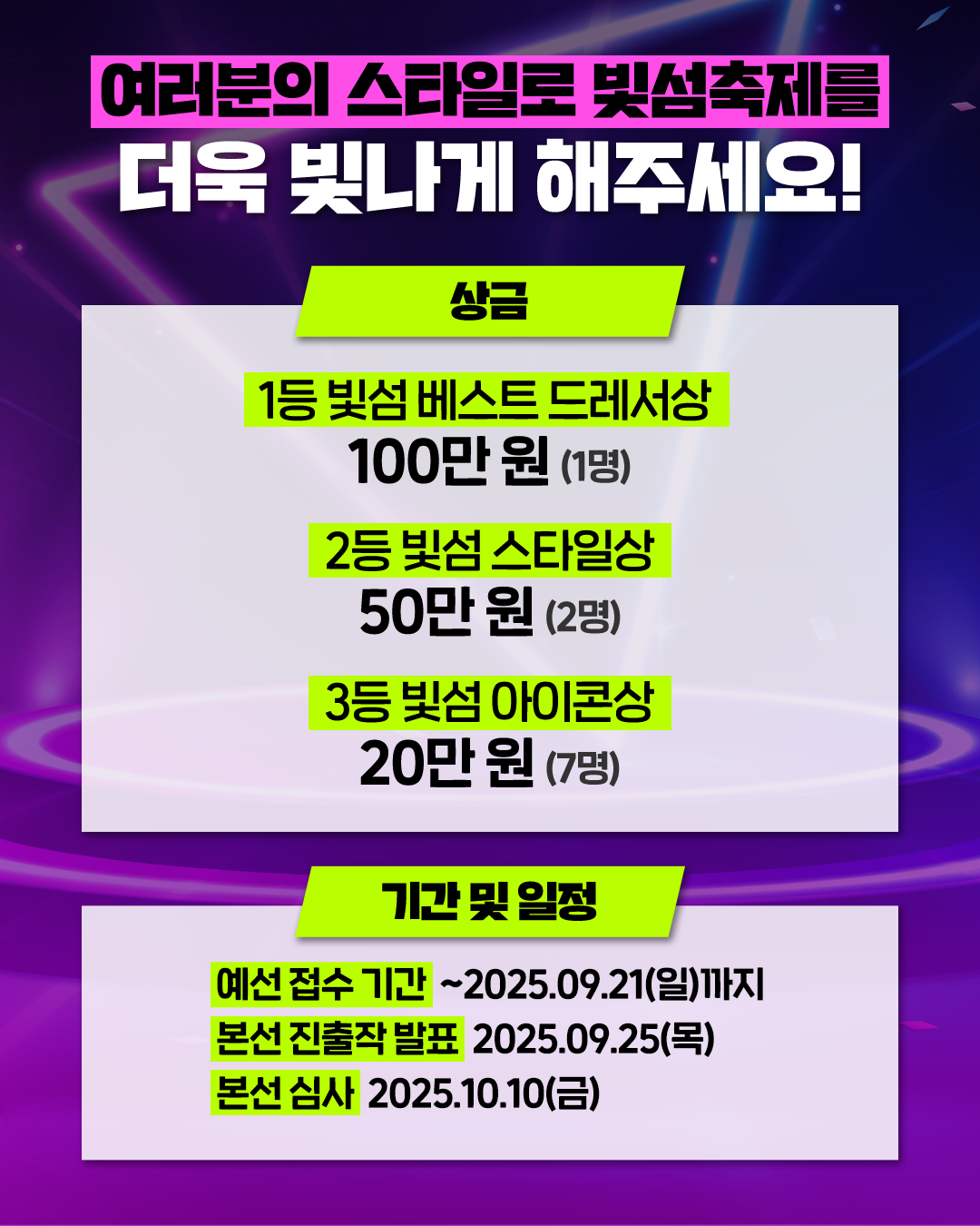 빛을 주제로 자신만의 스타일을 뽐낼 빛섬 패션 공모전에 응모하세요!