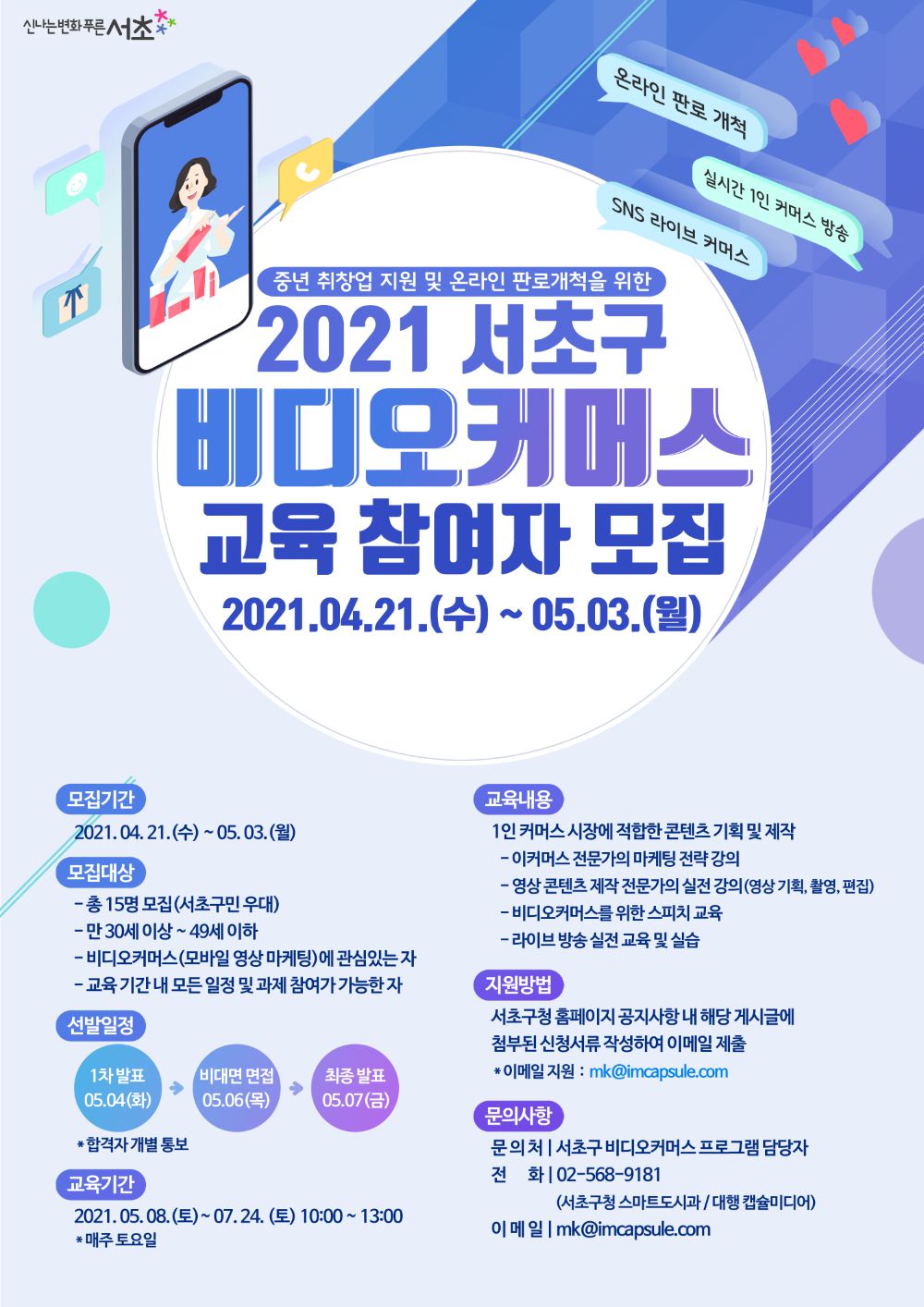 - 비디오커머스 교육과정 수료증 수여(서초구청장)