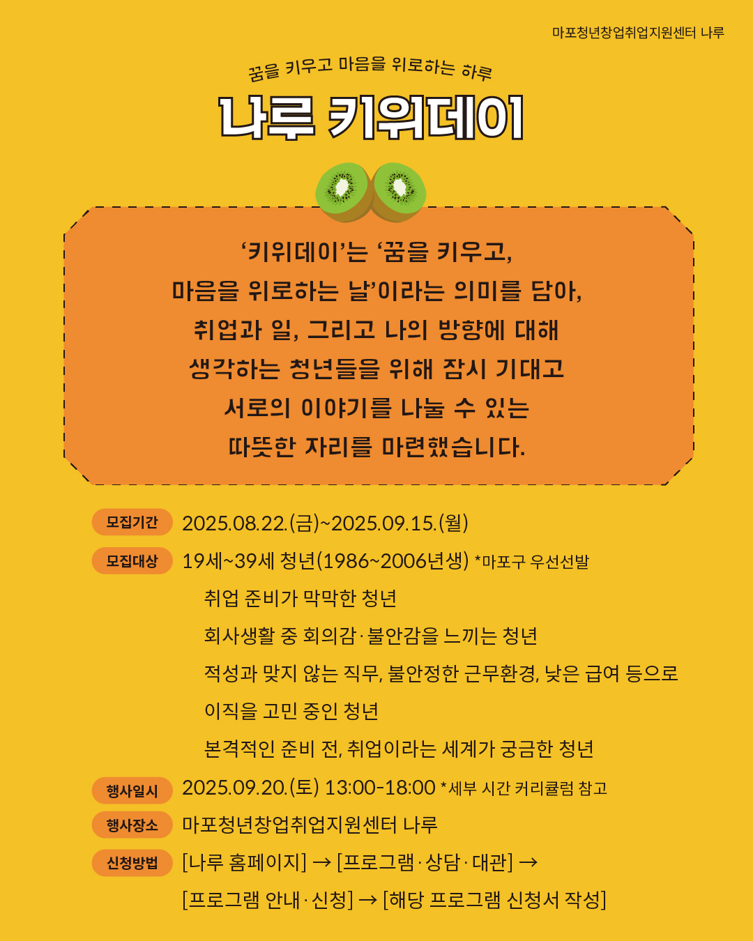 [취업DAY] 나루 키위데이(꿈을 키우고, 마음을 위로하는 DAY) 9월