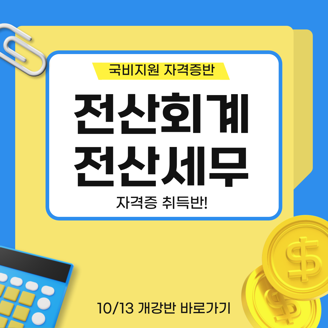 💼 국가공인 회계자격증, 국비지원+실무완성으로 준비하세요!