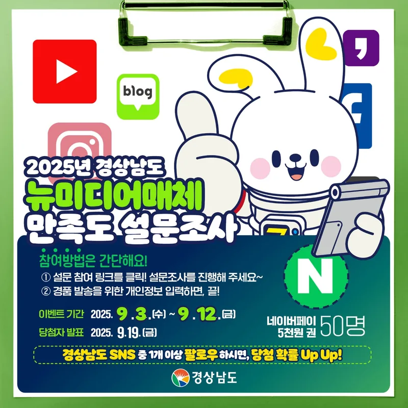 ※ 경상남도 채널 중 1개 이상 팔로우 하시면, 당첨 확률 UP UP!(팔로우 캡쳐 첨부 시)